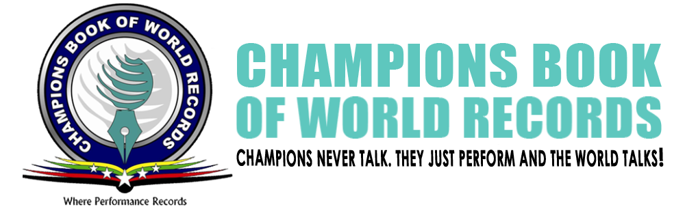 Champions Book of World Records is the Official Registrar of the World Records that catalogs and verifies extraordinary records across the world with authentic certification. It is an International World Records and Branding organization. Champions Book of World Rcords is counted as the Most Trusted World Record Certification Organization in the world.